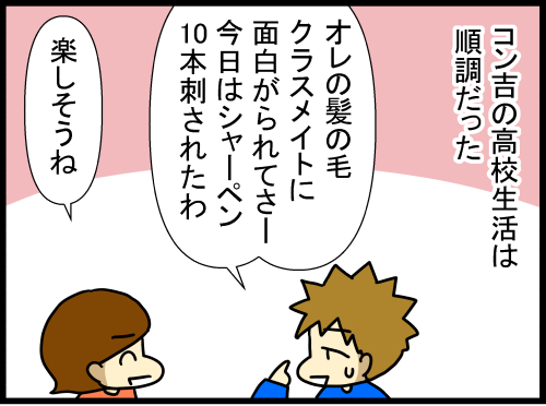 「助けて」を言う勇気を持ち合わせているコン吉は耐え忍んだものの、それでもやっぱりこの件は傷になり、高校でも癒えていなかったのだと痛感することもありました。