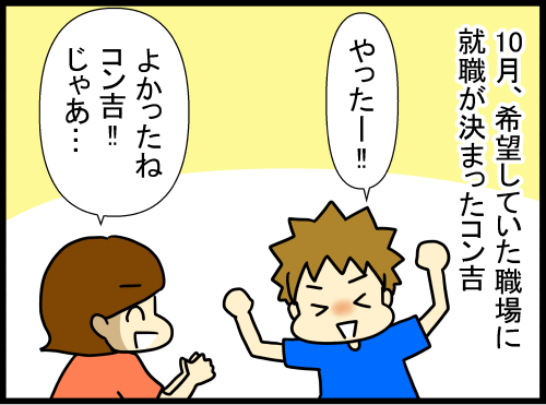 コン吉の高校生活、卒業まで(全10話)コン吉の幼少期この子の将来を悲観していろんなことを想像しては不安になっていた今となればそんな過去すら愛おしいあの時の私に言いたい大丈夫、ちゃんと成長するよこんなにいい子に育つよコン吉の卒業式、そんな涙であふれていたのでし ...