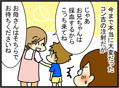 なぁ太が持ち込んだと思われる咳風邪が下二人に猛威を奮っています止まらない咳増える薬そしてとうとうコン吉が代表して採血をする羽目に採血と言えば注射に関してなぁ太は全く問題なかったもののコン吉は脱走兵でたい蔵は暴れ牛のようだったため →予防接種の惨状コン吉た ...
