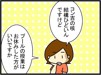 スイミングを習っているコン吉のプールは何も心配ないわと思っていたら