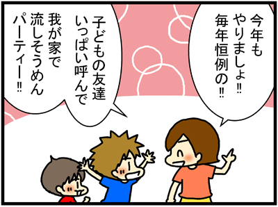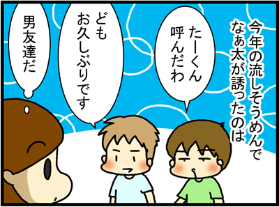 去年の流しそうめんパーティーでは女友達を呼んだなぁ太が
