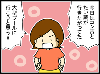 今度はコン吉たい蔵希望のプールに行くよ!と言い続けたらアイツ