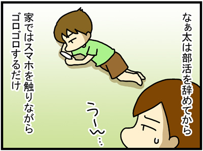卓球部をやめ →やめた経緯その後入った文化部にも結局行かなくなり部活そのものに行くことがなくなったなぁ太は学校から帰ると家でスマホをいじりながらひたすらゴロゴロするだけこんな状態で夏休みに突入しようものならなぁ太がどんな状態になるか昔の閉じこもった彼を思 ...