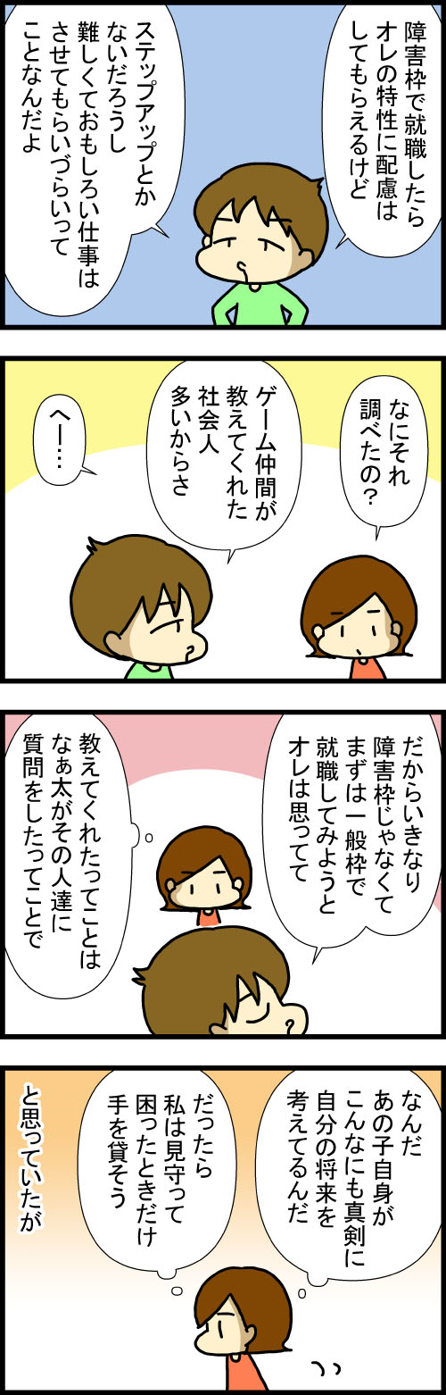 特性持ちの高3息子が選んだ進路(全26話)高校3年生就職を目指すなぁ太の選択肢、一般枠か障害枠か高校一年生で変わった新しい病院で確実に取れるであろうと言われていた精神障碍者手帳を取れないということになりなぁ太は一般枠での就職を目指すことになったのでした病院を ...