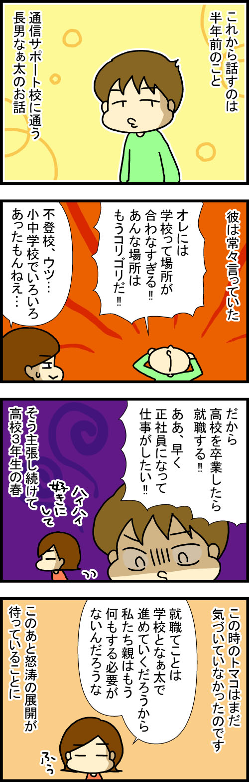 特性持ちの高3息子が選んだ進路(全26話)常日頃から「学校は二度とごめんだ!」と叫ぶ息子に更なる学校を提案してみました続く特性持ちの高3息子が選んだ進路(全26話) 【ランキング】押してくれると描く励みになります! 【更新連絡を受け取る】更新通知が届くよ! 【Ins ...