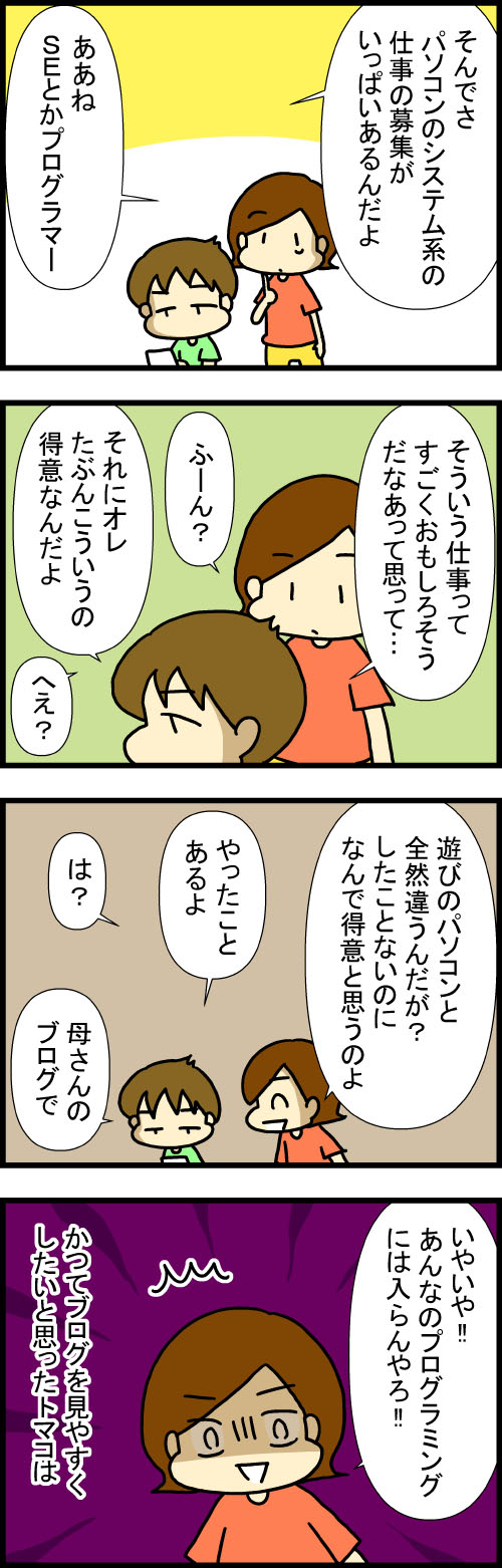 特性持ちの高3息子が選んだ進路(全26話)ハローワークの求人を見ることによりなぁ太が強く惹かれたのはパソコン系のお仕事でその道はとても険しそうだったのでしたそんななぁ太が手伝ってくれているシリーズ物総集ページはこちら ↑このページの管理や、全記事の整理等学校や ...