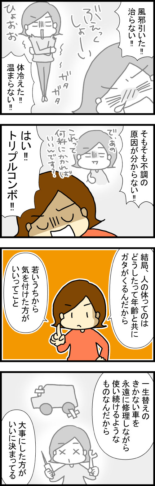 ⑩46歳、閉経の足音と体の変化 2023年12月05日 46歳、閉経の足音と体の変化(全10話)あなたの身近に「妖怪温めろ婆」がいたら、それはトマコかもしれませんさあみんな!!騙されたと思って温めようぜ!!関連:「妖怪飯炊き女」 46歳、閉経の足音と体の変化(全10話)完結 【ランキング】押してくれると描く励みになります! 【更新連絡を受け取る】更新通知が届くよ! 【Instagram】過去の記事を掲載してるよ!【発売中の書籍】発売中の書籍をご覧になりたい方はコチラをクリック →お仕事情報 「トマコのこと」カテゴリの最新記事 < 前の記事次の記事 > コメント コメント一覧 (1) 1. わかる 2023年12月05日 21:49 謎にK-POPアイドルの格好見て心配する 冬の韓国の空港ファッションでお腹やら太もも出てるから、仕事とは言え心配😟 0 トマコ がしました コメントフォーム 名前 コメント 記事の評価 リセット リセット 顔 星 情報を記憶 コメントを投稿する