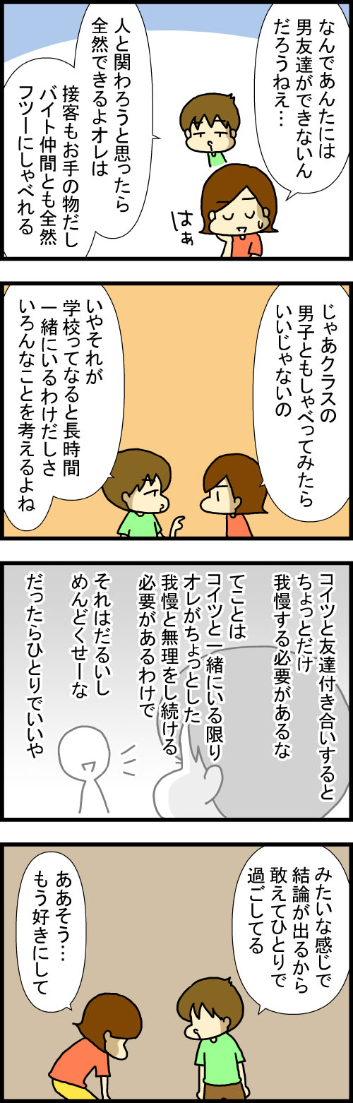 不登校児が大人になるまでの話24 2024年08月15日 不登校児が大人になるまでの話(全137話)リアルな男友達は繋がりはとても薄かったけど、いるにはいたたーくん① たーくん② 続く不登校児が大人になるまでの話(全137話) 【ランキング】押してくれると描く励みになります! 【更新連絡を受け取る】更新通知が届くよ! 【Instagram】過去の記事を掲載してるよ!【発売中の書籍】発売中の書籍をご覧になりたい方はコチラをクリック →お仕事情報 「なぁ太高校生」カテゴリの最新記事 < 前の記事次の記事 > コメント コメントフォーム 名前 コメント 記事の評価 リセット リセット 顔 星 情報を記憶 コメントを投稿する