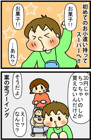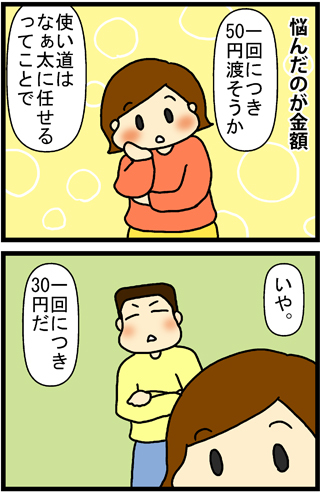 半信半疑のまま、なぁ太のおこづかいはお買いもの一度につき30円に決定。