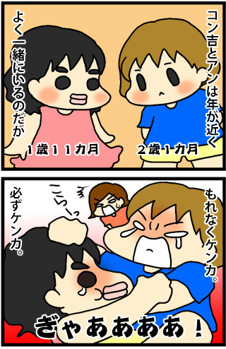 二歳児同士のケンカ。